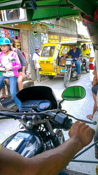 酒店门口包了辆tricycle,150P到另一个码头坐船,司机这个编号超吉利