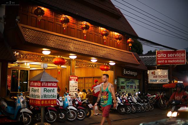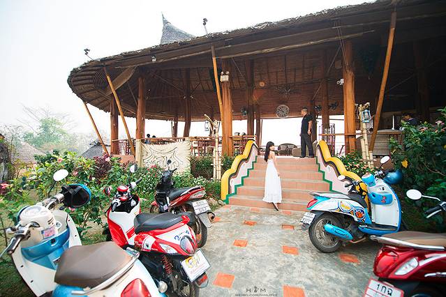 一切都那么慢、那么悠闲,在这里的每一分每一秒都让人从里到外的每一个细胞都彻底放松。在拜县骑摩托真的是最最方便的。如果不会骑而且也不想学,从Mari PAI酒店可以乘坐酒店的小车去拜县中心的步行街,费用大概是25B左右一个人。也可以在步行街打电话给酒店叫车接,费用应该差不多。但是如果想自己跑去草莓园、二战桥、树屋等等地方,似乎只有骑摩托方便(还有租自行车的,可以骑着好累)。