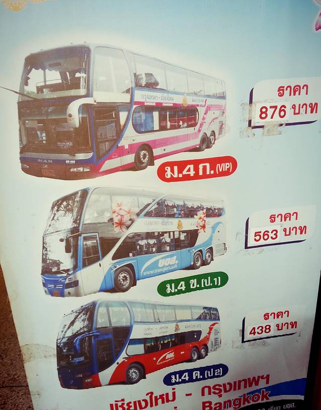 在拜县步行街的aya买了回清迈的票,下午1点多就出发,大概5点左右到达清迈。路途依旧是那么的有节奏感,大家一起在车里左右左右的晃。传说中清迈和拜县之间有700多个弯,下次我如果没在车上睡着就亲自数数看。到达清迈后直接奔去车站,找传说中比NCA大巴更豪华的大巴,路痴找了半天才找着,买了最贵的876泰铢的通宵回曼谷的车票