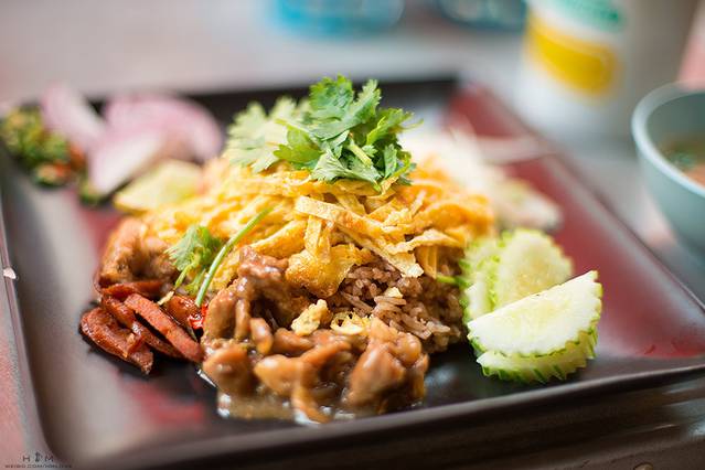 在清迈吃到的第一顿饭,是路边随便找的一家有本地人在就餐的小餐厅,点了一个感觉顺眼的饭,然后就欢快的次了起来。我本来非常的正经的想要把我吃的一切食物都拍下来并且记下名字,但是真正到那儿的时候,我发现食物上来之后我很少会真的端着相机拍,第一时间就是开吃……然后吃爽了回头想想,艾玛,忘记拍照了……