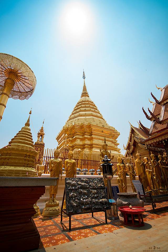 在这里草草的拍了几张,就跑出去校门口坐双条车去了双龙寺。我去之前百度啊查攻略,大家都讲说可以在清迈大学门口拼车坐双条车去双龙寺,单人只用30B还是50B的(寺庙在山上,山路那个十八弯),但是我找来找去都没找到可以拼车的双条车,于是……我一个人包车上山去了……费用我记得是150泰铢,相当于30人民币吧,其实不算太贵,因为真的开了老半天,而且一直山路旋转旋转(旋转、跳跃,我闭着眼,喧嚣看不见……艾玛打住),师傅超级娴熟,开得可high,没咋吃早饭的我最后差点晕掉,还好到了555……尊是不容易……