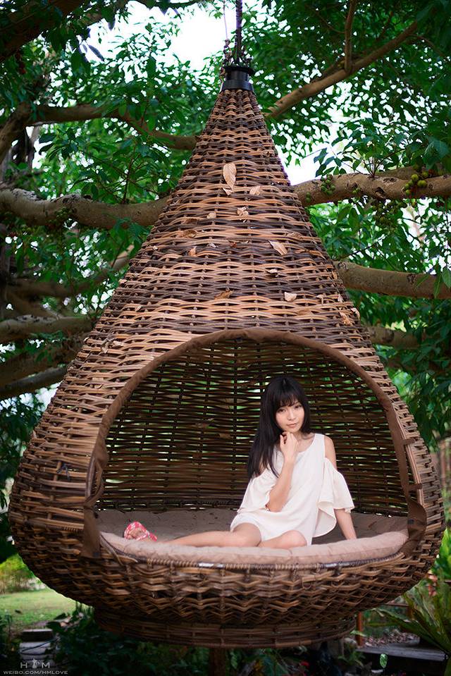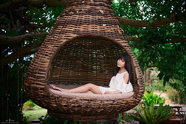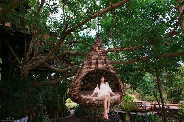 【在悬空沙发里的拍照建议】妹子们请别坐得太靠里面,那样拍出来就是无腿怪,拍的时候身体别太懒散的状态,腰要挺起来才好看噢。