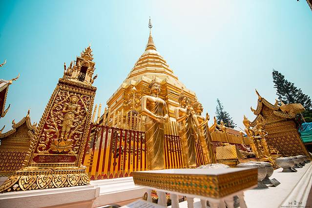 3月26日 前一天在清迈通过自己住的酒店前台,包车去aya车站买到了去PAI拜县的车票,下午4点半的样子aya就会派车来酒店门口接我,所以在那之前我还有时间溜达。于是我把上午的懒觉时间挤了出来,跑去了清迈大学和双龙寺。依旧是坐双条车出发啦。