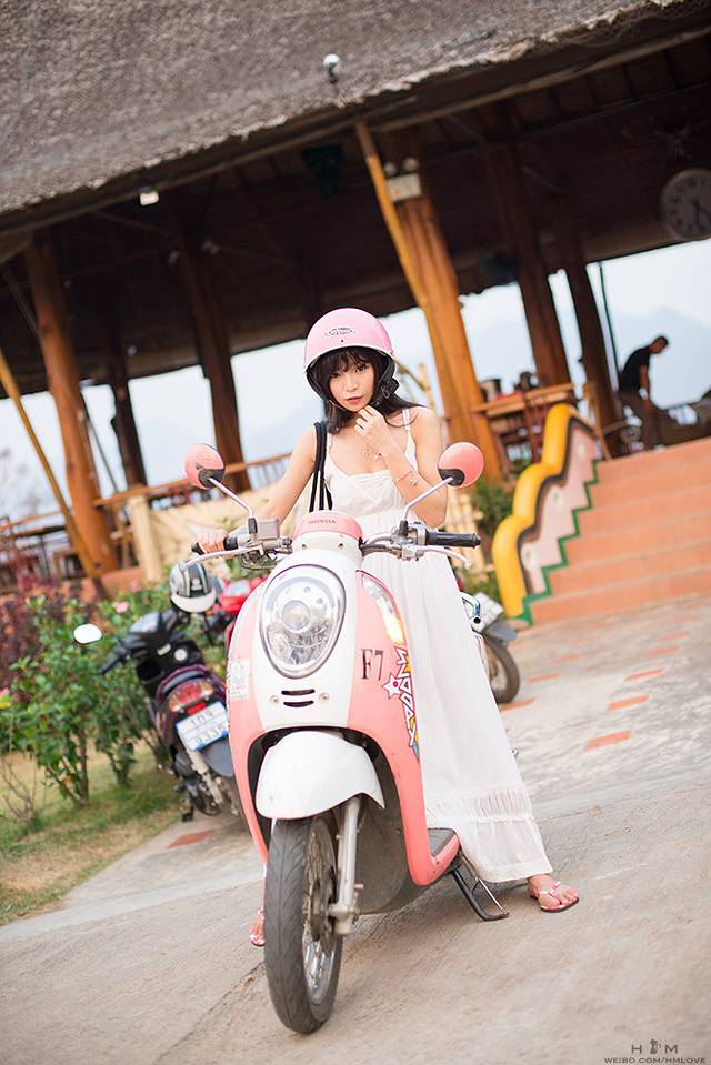 傍晚太阳下山了,于是我出门活动了,换上裙子(我后悔衣服带少了,哭)画上淡妆,骑着小摩托去步行街吃吃吃、拍拍拍。