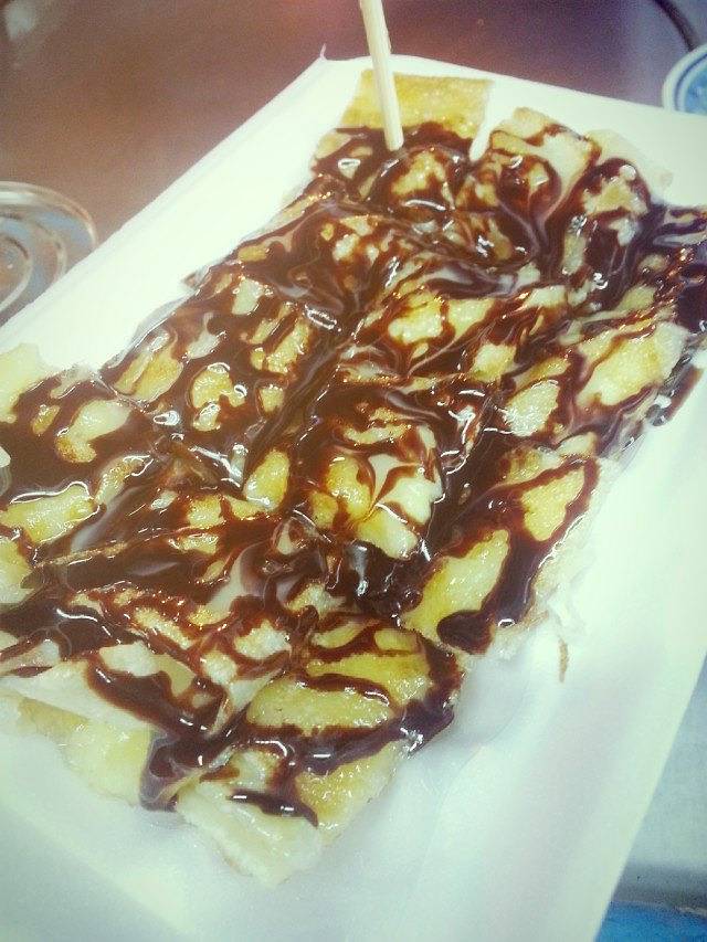 这个是香蕉炸啊什么的,上面有巧克力酱,味道可以自己选啦。我觉得挺香滴。