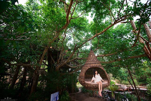 树屋这里还有个拍照利器,就是这个在高空中的挂式沙发,坐在里面拍照什么的,需要交20B费用,在旁边放着一个纸盒子,意思是大家自觉交纳啦。从沙发前的梯子小心往上爬就能到沙发里,爬上去之后拍照时可以叫工作人员帮忙把梯子移走。沙发在空中挺稳的,没怎么晃,但是里面真的有点小脏,树叶灰尘一大把啦,怕脏的妹纸请注意带纸巾垫着,像我这样不在意这些小节的(其实是懒好伐),就直接大大方方的坐吧