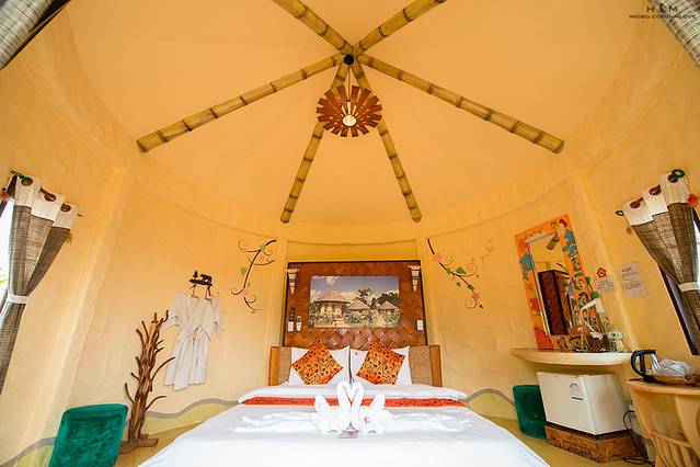 因为来了拜县,来了这个酒店,我就开心得完全不想走了,原本计划去芭提雅的,最后因为太爱拜县而直接决定不去了,多在拜县玩儿几天。于是乎,我赶紧跑到酒店前台问了酒店接下来几天是否还有空房,胖胖的可爱的店员告诉我有,但是没有我住的蒙古包啦,于是我就定了几天其他的房间(简直明智,其他房间也超赞,后面有图),就这样,原本只计划待1天半左右的拜县,最终待了近4天。这或许就是我不爱预定酒店能随时改变计划的好处吧~