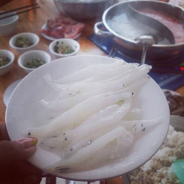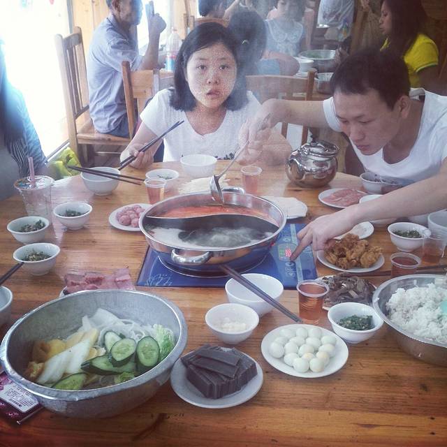 除了甜酒汤圆我们每天吃的就是鱼了,这边吃酸汤鱼就跟吃火锅是一个样的,但是他们算账是跟日本料理样的,哪种碟子的是几块,然后青菜就是你点一份出个青菜钱以后,各钟青菜随便拿随便夹多少