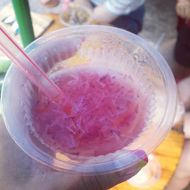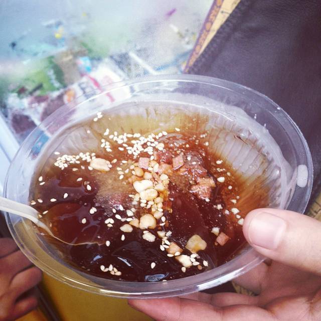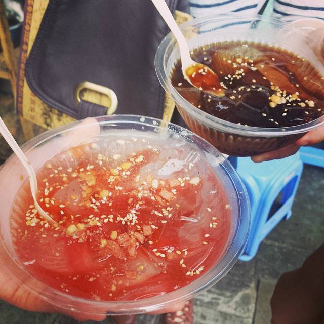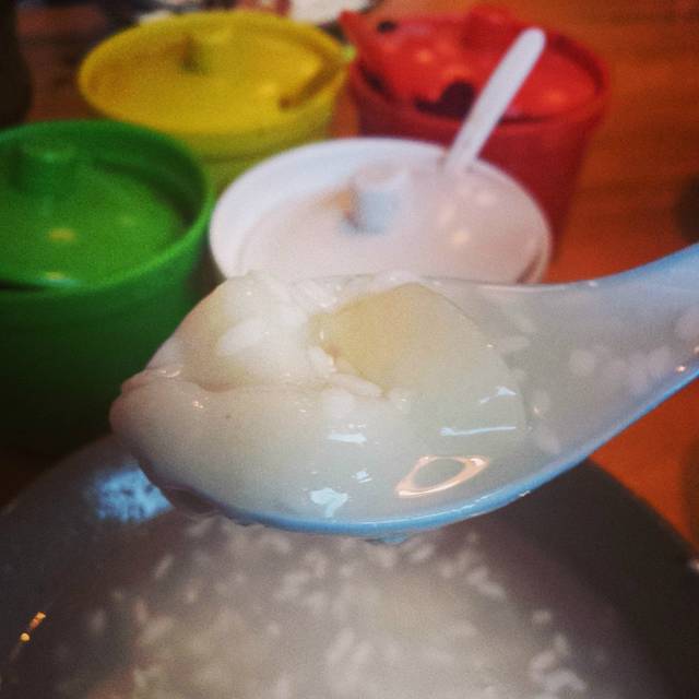 冰的热的,都有吃 特别是大清早出门去玩的时候,旅馆边上就有一家,我们就会买着带上边走边吃.整得跟喝珍珠奶茶一样的