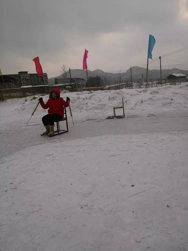 河面上结了厚厚的冰,冬季冰面上有很多的娱乐项目