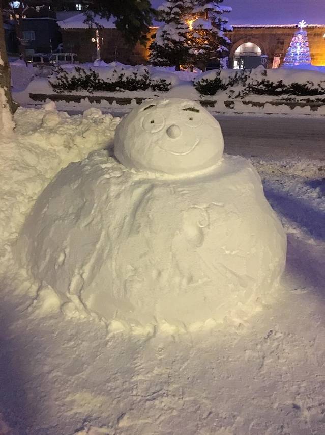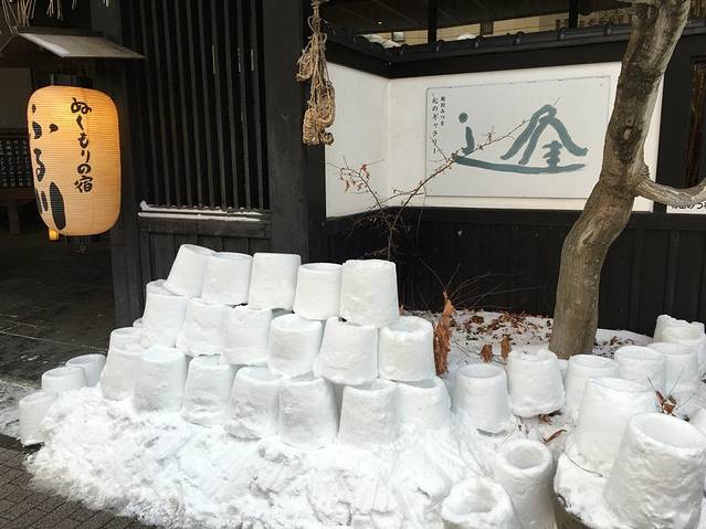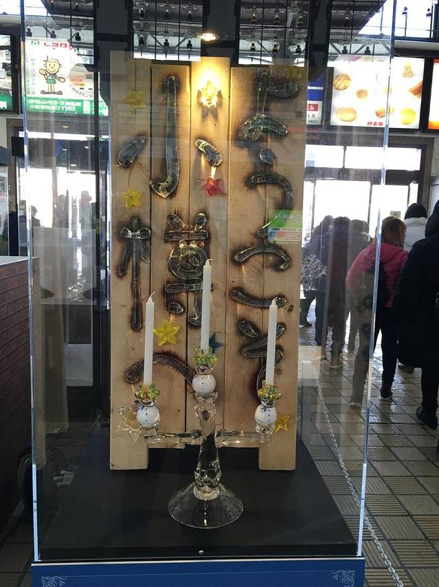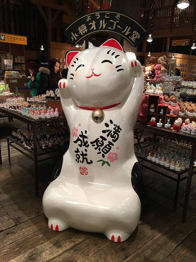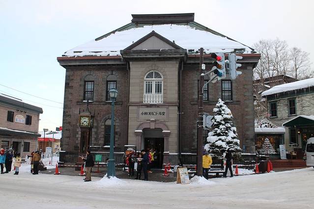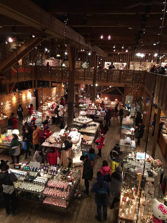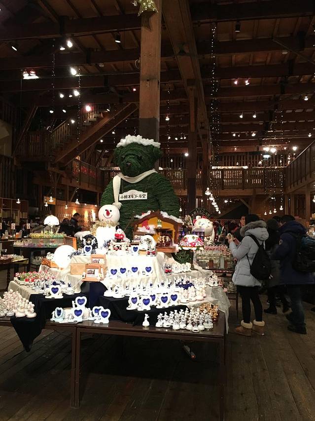 小樽靠海,从小樽站出发,一路走到八音盒本馆,路上可以看到很多卖玻璃器皿的,这边的玻璃制品比较出名。路边还能随处看见雪人。