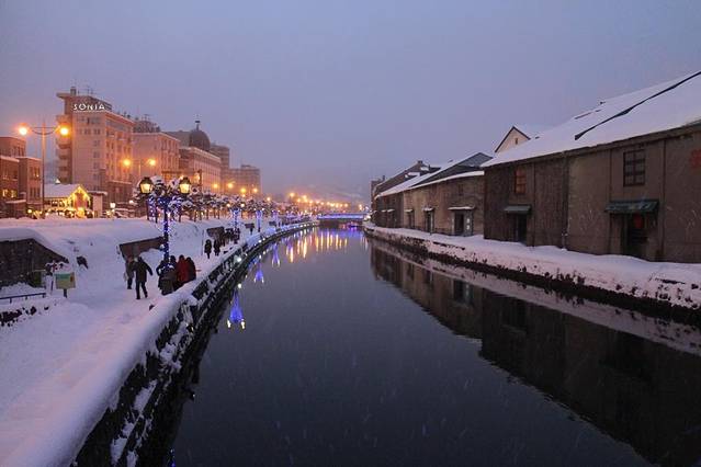 北海道的冬天,下午四点多就开始天黑了。从八音盒本馆走到运河还是要走段路的。