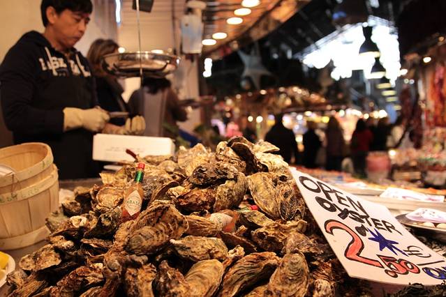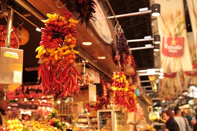 位于巴塞罗那兰布拉大道上的波盖利亚市场是巴塞罗那最古老的市场,也是最受巴塞罗那市民欢迎的地道食材采购地。 波盖利亚市场是名副其实的“吃货天堂”,据说每一个摊位都不会外租的,还是世代相传的。摊位上的新鲜的水果、蔬菜、火腿、海鲜、糖果等井然有序地排放着,各种色彩穿插错落、如同毕加索手中的调色板一般,无不泛着令人愉悦的光泽。摊主们热情地招徕着过往行人,身为吃货的我,这也是来到巴塞罗那我最喜欢的地方,新鲜的生蚝和海胆真是美味之极。