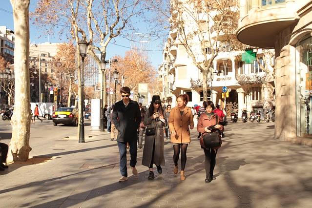 当我们抵达住处,出地铁的那一瞬间,被身后的圣家堂教堂所吸引,这不是应该存在于森林吗?却出现了在城市里。天色已晚,我们来到了我们的住处,在飞行的过程中我们略显疲惫,乘着我们放行李的时间,我们在客厅小憩了一会以缓解疲惫的身体。到了晚饭时间,在当地朋友的带领下,我们来到了曾经的圆形斗牛场,由于加泰罗尼亚人反对残酷的斗牛活动,慢慢地演变成一个现代化商业中心。在商场的天台上西班牙广场的景致净收眼底,源源不断的车辆穿行着。