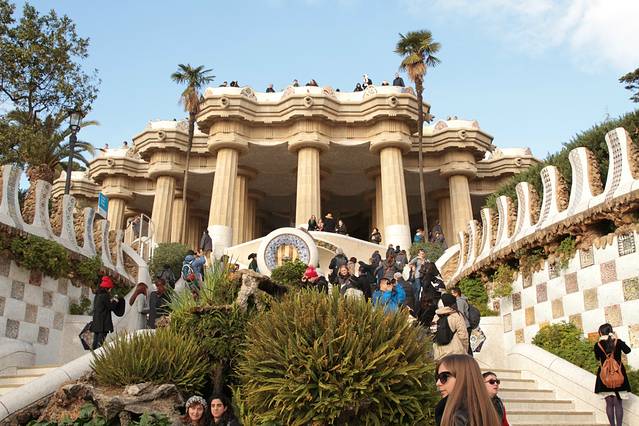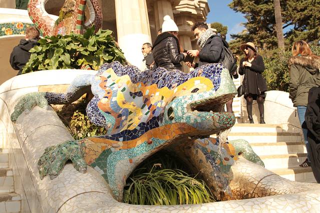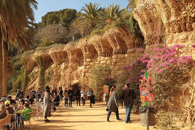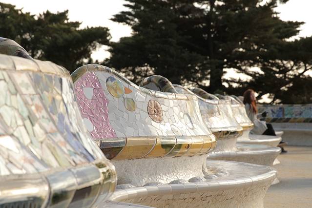 坐落在巴塞罗那佩拉达山上的圭尔公园,是高迪设计的一个世外桃源。这个如童话城堡一样存在。高迪把这种城市赋予了绚丽的色彩和线条,美轮美奂,五彩缤纷大蜥蜴安静的保护着这个公园。这个公园美在于他是依山而建,没有从城市搬来一砖一瓦,都是动用这山里所有的石头而建立,高迪很好的利用了这座山。登上蘑菇塔的塔顶,还可以眺望与之遥相呼应的圣家堂。公园最漂亮的地方要数广场里的彩色长椅,好似波浪又似长龙,蜿蜒在整个广场。这也是巴塞罗那最精彩的地方,曾经高迪在这里度过了一段安静的且没人打扰生活,可以远离城市的喧嚣,在这里过着与世隔绝的日子是多么美哉。今天是停留在巴塞罗那的最后一天,即将离开这里,我却又万分不舍,下一次,我还会再回来的。