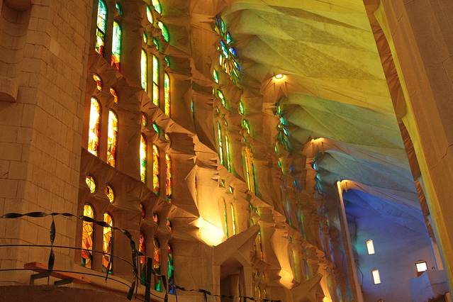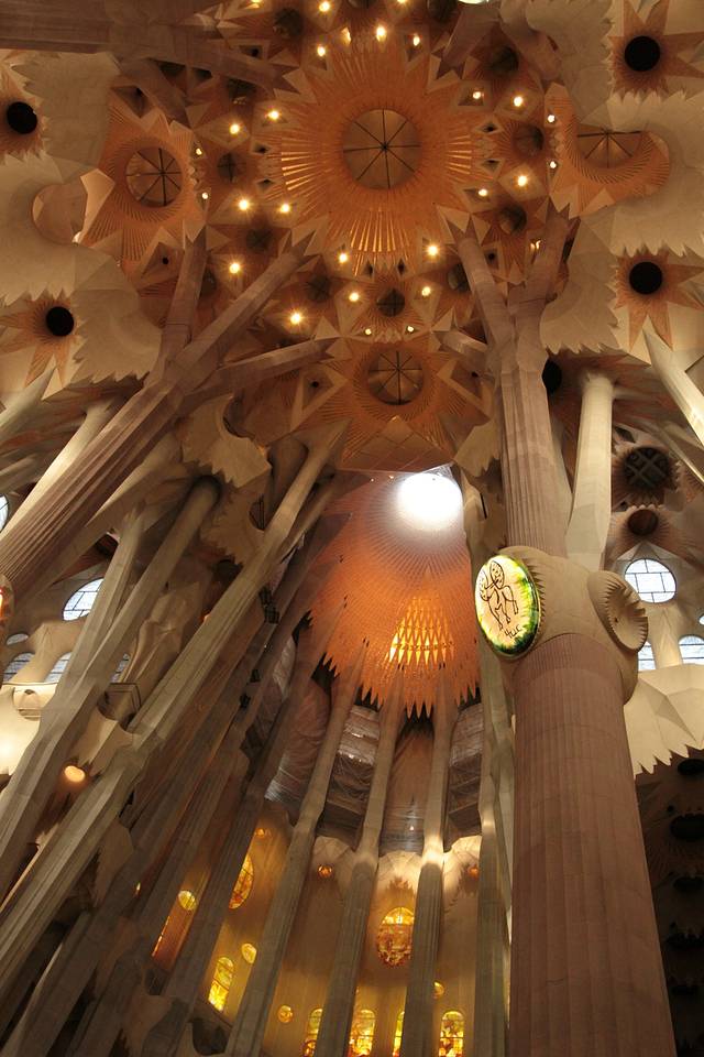 都说早起的鸟儿有虫吃,美好的一天从圣家堂开始,始建于1882年,1883年由建筑天才高迪接手成为总建筑师,直至1926年因车祸去世。他是高迪的未完成之作,跨越了一世纪仍在创造中,在生前的最后12年,他谢绝了其他的工程,只专注于圣家堂,为了他奉献了自己的一生,天马行空的想象为这座城市带来不一样的色彩与线条。教堂里的色彩炫彩夺目,令人瞠目结舌,竟无法用语言来表达。