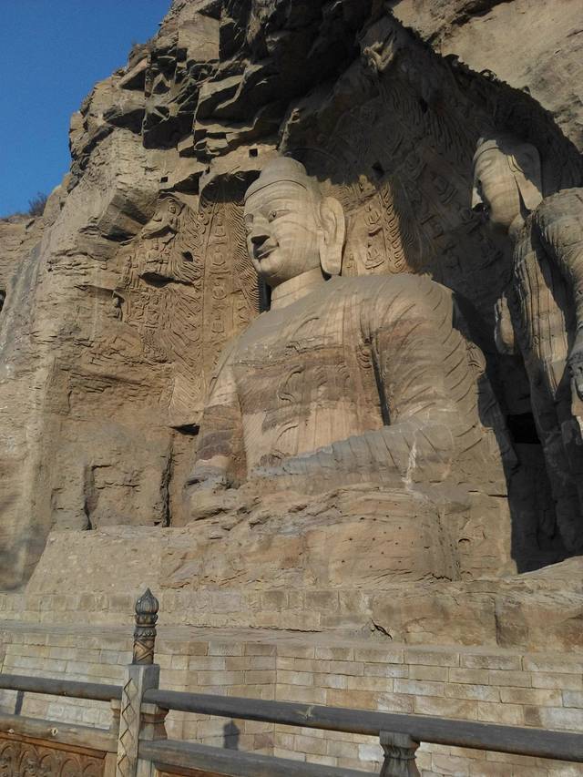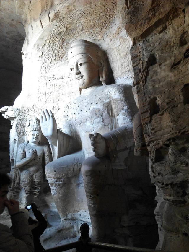 第二天看云冈石窟,对比起龙门石窟,这里保存的比较好,听说当年日本去龙门那边据点,最后逃跑时觉得反正带不走就破坏。云冈石窟倒是复原了当年是有木楼阁遮挡,免得石窟日晒雨淋的,可是很多木阁楼都腐烂了吧,现在逐步修复,洞窟内有些补全了颜色还不错看,不大一排过去一个小时左右就走完了。接着开一段时间又到了悬空寺,这是有点道家意味,曾经有仙人居住吗?因前段时间滑石现在不让游客上去了,只能让游客远观。可能因为是山阴,特别风大特别冷。赶赴五台山。