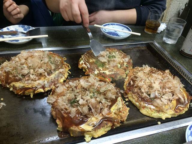 哥哥嫂嫂带我们去吃的大阪烧,正宗的没话说,老爷爷老奶奶开的小店!还想再去的小店。