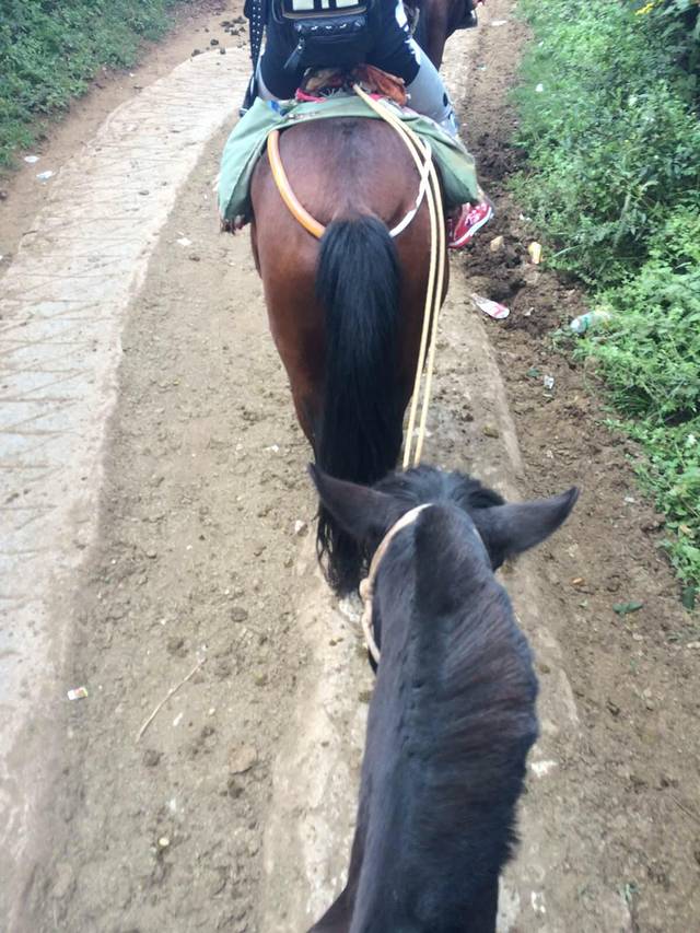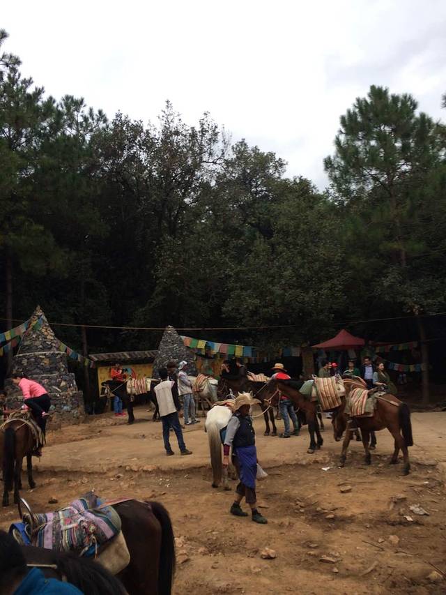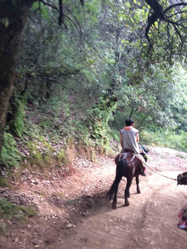 发烧的病态~一夜火车颠簸的黑眼圈、还有高原干燥,干干的嘴唇~好在,骑马进了茶马古道,闻到新鲜空气似乎好很多