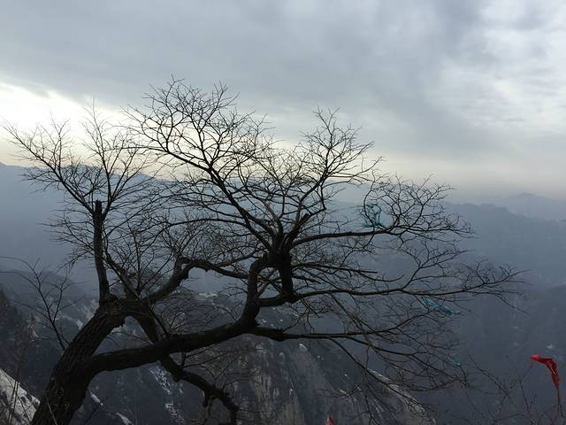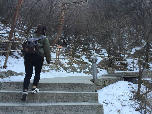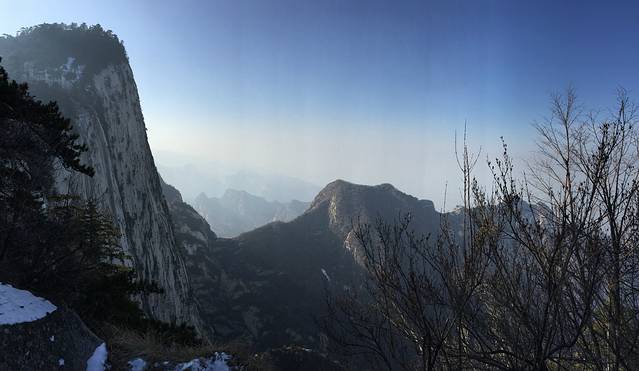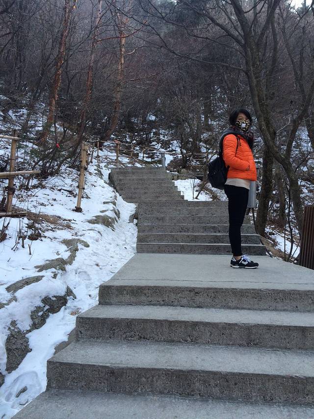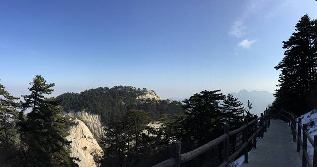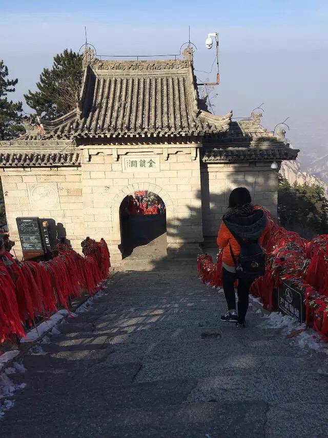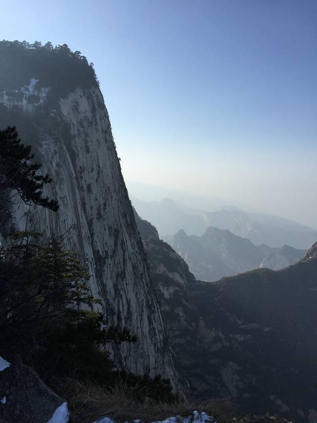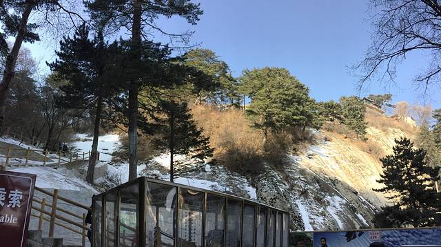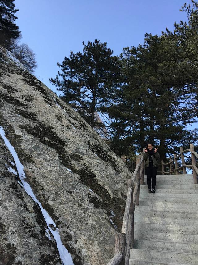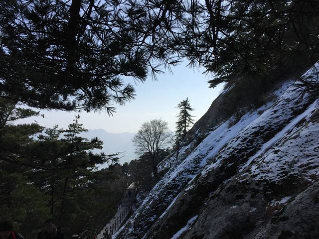 乘索道上山后,映入眼帘的便是白白的积雪,运气超好,在华山上竟然还可以欣赏雪景。
