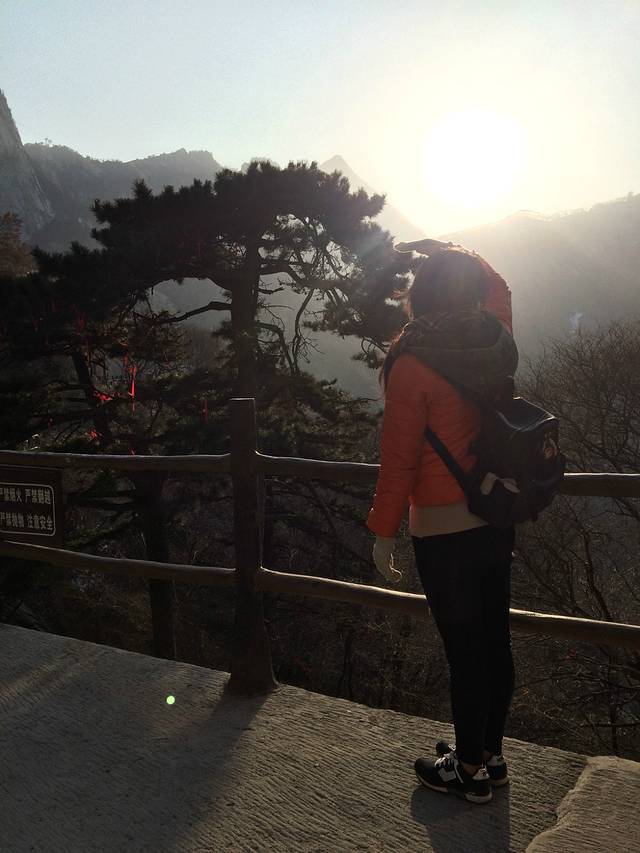 出了火车站,正好碰上两个同样是去华山的,便一起拼了车去玉泉院,在出租车上拍的日出。