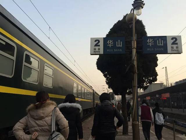 好久没乘坐过这样需要下台阶的火车了,上车的时候都没有爬台阶,应该是华山站的月台太低了~晚上回西安的时候发现,华山站小小的,只有一个进站口,候车室也是小小的。