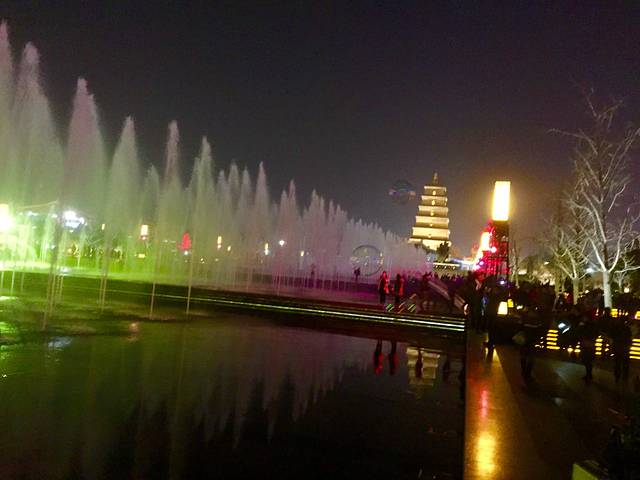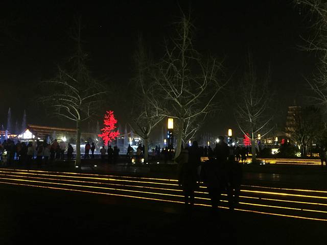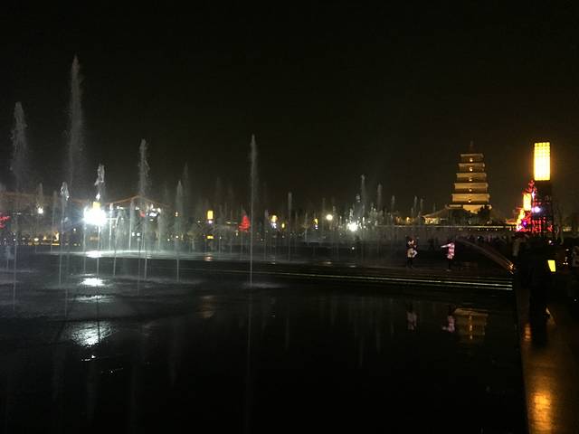 吃完饭,休息一会儿,去北广场可以看亚洲最大的音乐喷泉表演。周一至周五是两场,周六周日六场。我们周一去的,所以看得晚上20:30的那场,寒风中看喷泉也是另一种不一样的体验,确实大,但是晚上好冷好冷,夏天去看应该会很棒~