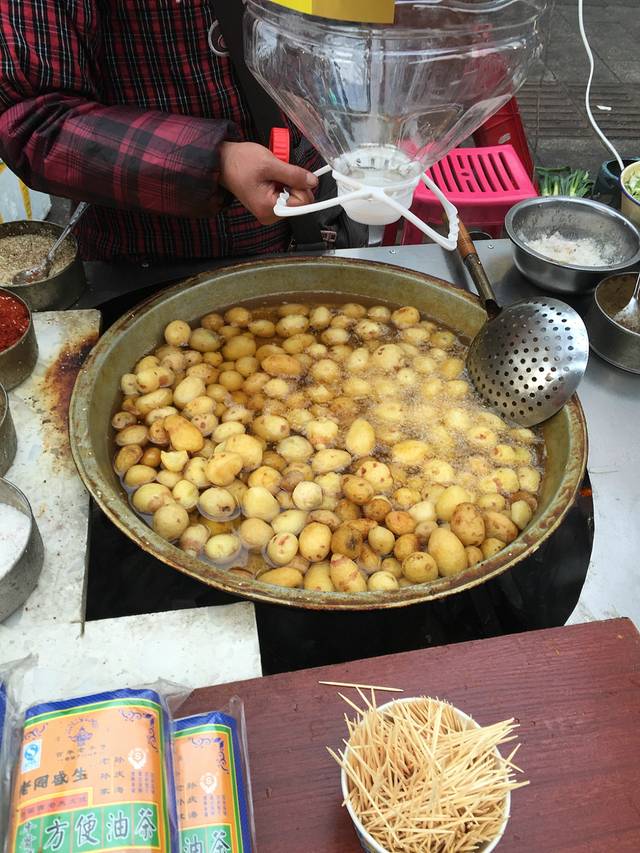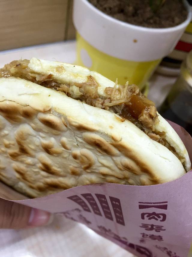 这叫什么馍来着,我不太记得了,一个大馒头,里面自由选择加菜,早饭摊上买的。