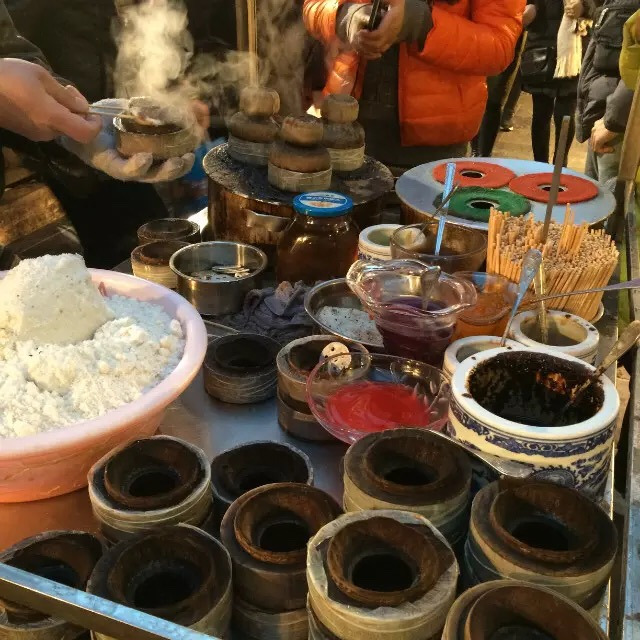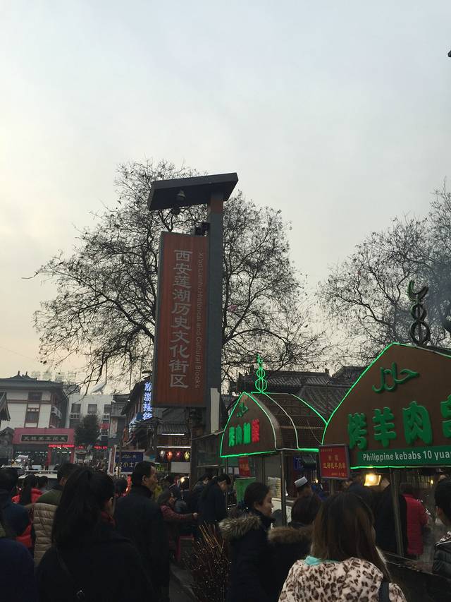 西安站乘公交车到鼓楼,回民街就在鼓楼西面,走一会儿就到了。感觉即使是淡季,回民街也是热闹非凡,烤串儿,绿豆糕,石榴汁,桂花糕......还有什么牛羊肉泡馍,肉夹馍,超级多,如何选择嘛,你看排队的队伍长的那家准没错。