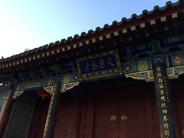 大雁塔的入口在南面,我们下车是在北广场,绕了一大圈才到售票的地方。小雁塔门口的牌匾上写着小雁塔,但是大雁塔门口却是大慈恩寺,我当时还楞了一下,后来才知道大慈恩寺才是它的名,大雁塔只是人们对它外形仿照印度雁塔的另一种称呼。