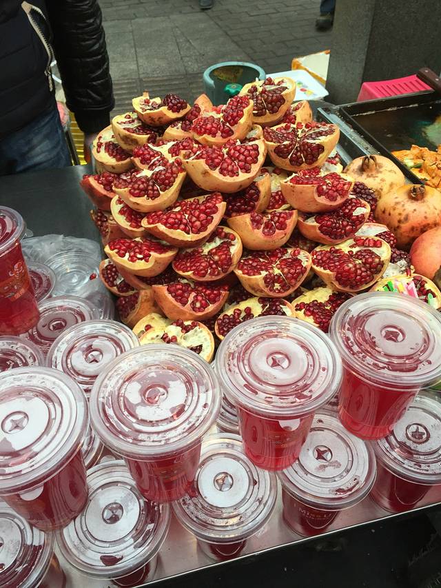 西安临潼的石榴很有名哦,回民街好多卖石榴汁的,去兵马俑的路上也有很多小摊贩卖石榴。