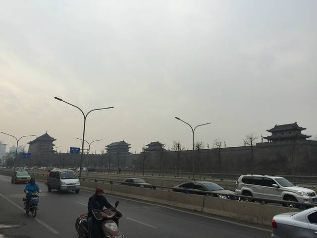 去住的地方,出了朝阳门地铁站,就看到了西安的城墙