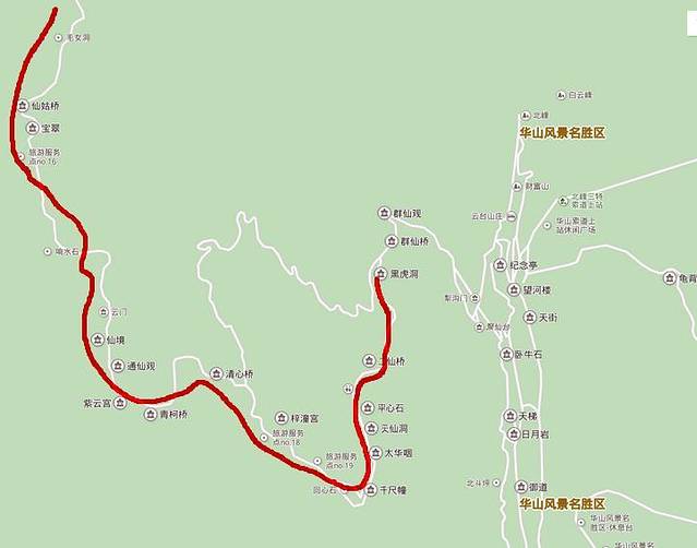 下午4点左右到达北峰,然后沿着仙桥——平心石——百尺峡 ——千尺幢,从北峰下山