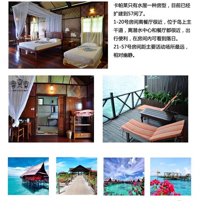正常情况下卡帕莱的房间非常紧 价格是按人头算的 一般都要提前几个月预定,我们是在淡季出发,so,非常幸运的提前十天就订到了房间,感谢代理把我们安排到位置比较好的客房 简直360度无敌大海景 爽爆了 。卡帕莱是吃、住、潜、行一站全包式服务,从接机开始,到送我离开我就没花钱了!价格包括:往返斗湖机场或酒店的接送,仙本娜码头至度假村的快艇,每日三顿自助餐加下午茶及甜品,日间服务有茶或咖啡,无限次浮潜。在岛上除买纪念品和深潜外几乎没有花钱的地方,最后一天离岛时需要支付每人10RM码头费。