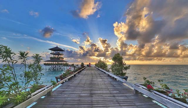卡帕莱所在的地方并不是一个岛屿,而是坐落在马来西亚沙巴西巴丹岛和马布岛之间的一块沙洲,在经历过大自然严重的侵蚀之后,这块沙洲变成了现在这片躺卧在利吉丹珊瑚群顶端的海滩,广泛舒展的顶部毗邻着广阔的西里伯斯海。卡帕莱就是由几十间别墅小屋建在海中的建筑物。卡帕莱的海水晶莹剔透,名符其实的是一座漂浮在水上的天堂,毗邻世界排名第二的潜水圣地诗巴丹二十分钟船程。是东马沙巴州诗巴丹性价比最好的水上屋度假村。