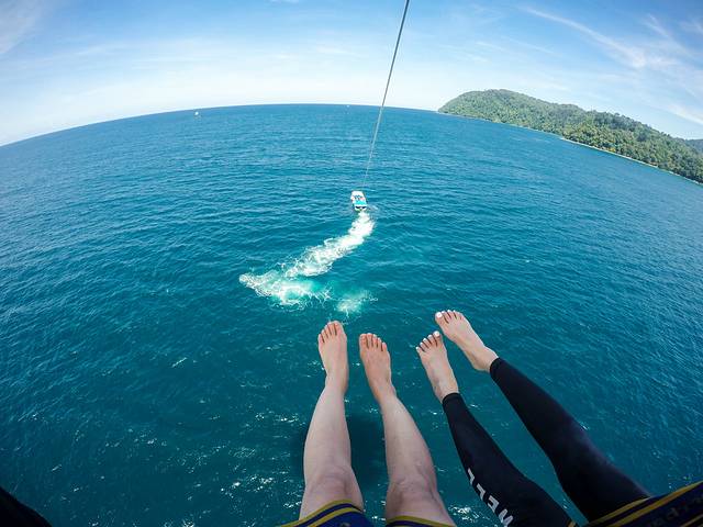 沙比岛四周海水清澈见底,海滩细沙连绵,珊瑚景色美不胜收,水中还可以见到行行色色的热带鱼,在此可驾快艇乘风破浪,畅游于碧海蓝波之上,也可潜入深水一探七彩缤纷的海底世界,还可烧烤生猛海鲜一饱口福。这里适合浮潜,岛上有潜水配备供出租,非常方便。另外有摩托艇,香蕉船,水上降落伞等娱乐活动。