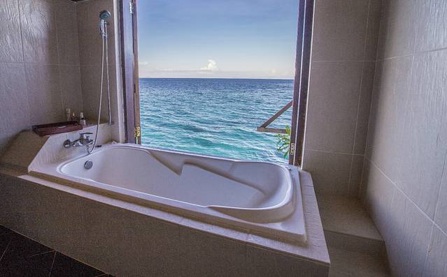 从浴缸窗外纵身一跃就可以跳入大海