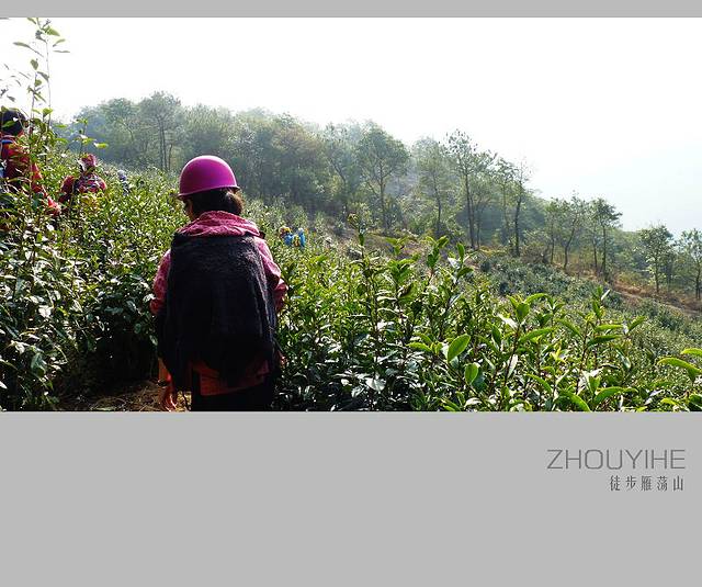 一行35人,一辆大巴做了近二个小时到达雁荡山,开始徒步走过1个小时,前方的奇山怪石就印入眼帘了,穿过一片茶园我们继续上山。