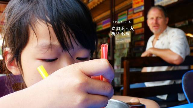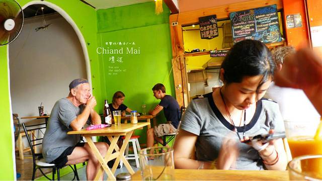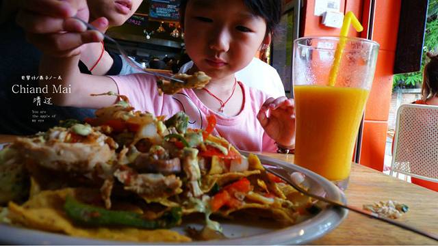 衣服干的差不多,我们继续骑行在一家美食店停下,老外们都在享受他们的美食,停好摩托车,三人坐了下来,两杯芒果汁,再来盘他们店的压轴菜,青椒洋葱署片,不过,这是我起的,因为里面基本上就是这三样东西,她们先上两杯冰水,然后我和女儿媳妇聊我们的天,菜到了该上来的时间,自然会上来,老外都会悠闲的做在这里,其中几个美女长的很好看,这次出来看见的美女老外不少,老板娘不慌不忙的和她的伙计做着她们手头上的事儿,上了两杯芒果汁,芒果汁总是那么好喝,最后的青椒洋葱署片,我女儿说,"爸爸点了这个辣的东西,但很好吃,爸爸真是个天才噢",我想是因为里面有署片的原因吧,最后是叫女儿去结的帐,老板娘捏着她的小脸找了钱,以后出来叫女儿告诉她们捏小脸就要打个折,哈 哈 哈