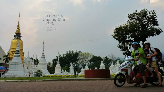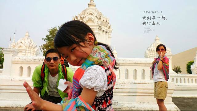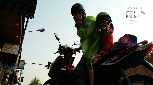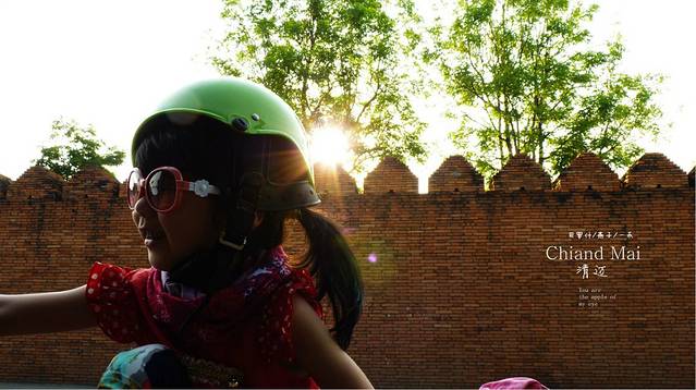 走出洛莫利寺,护城河边上的小贩们已在摆出他们的摊,边上正好有一个鸡腿饭的老伯,正在摆着他的滩,饭还没煮好,但鸡腿有了,买了两个鸡腿,想必现在国内正在闹禽流感,很多人没吃过鸡和不敢吃鸡腿了吧,啊,清迈的鸡腿,比奥尔良好吃,对了还有古城里的小贩们的冰激凌,又便宜又好吃,三人个,两个鸡腿,沿着护城河,古城墙,我们一路散步,女儿一路在古城墙上跳舞,她说她自已是什么仙子,是呀,伴着护城河,古城墙还有黄色不知名的树,我家的小家伙和媳妇美的像仙子,其实很多人问我旅行的意义是什么,是什么呢,我不知道,我只知道在钢筋混水泥筑成的都市 ,我们不停的忙,压力大,一到家还有家里的很多索事,和媳妇越来越少沟通,也不知用什么方法沟通,曾经热恋的心,没了,孩子在这个家,这个家有时会有生气,但有时孩子闹又会觉得烦,我们好象缺失了很多东西,后来我发现别人的老婆为什么比自已的老婆好看,街上的女子为什么这么性感,后来的后来,我和媳妇在珠峰在郞玛拉峰,在沙巴的海底,在无人区,在佰生的地方,我们相依为命,去共同解决我们在路上碰到的各种困难,解决困难后的那份快乐,碰到美味后的共同分享,遇到好风景一起欢呼愉悦,在路上,我们看见各种不同的人,听不同的故事,民情风俗,我们发现生活如些美好,发现各自身上不曾发现的东西,而在城市里在家里怎么就乎略了这些呢,在路上,发现媳妇怎么这么美,墨镜,背包,神情,其实有人说运动的女人是美丽的,我想改一下,其实在路上的女人更美,你说旅行是意义是什么,我又说多了