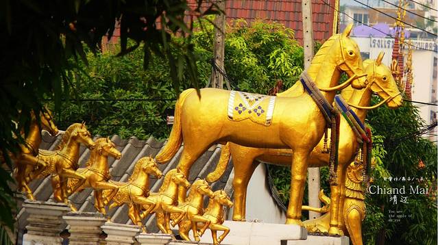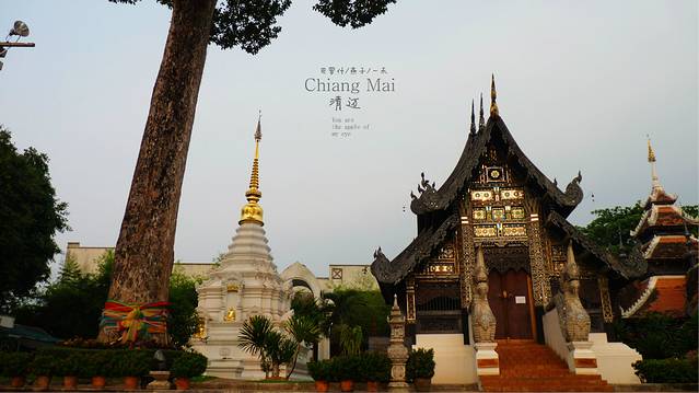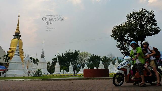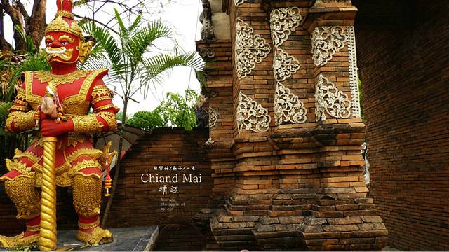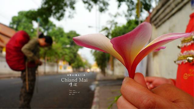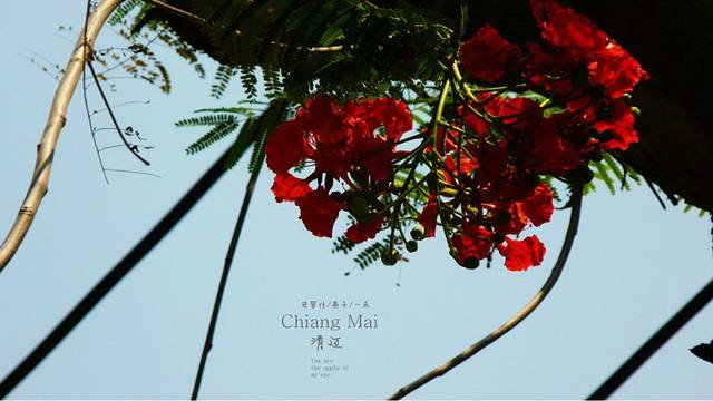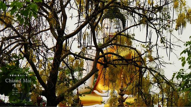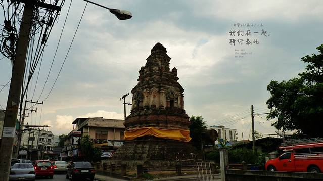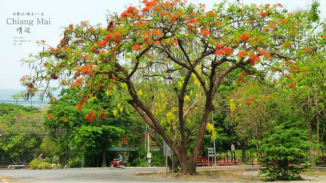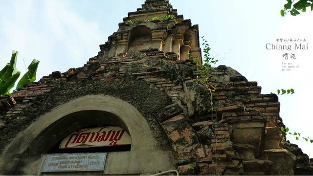 拿着地图,开着摩托,迷失在这古城里,这又是哪里,开满红花的树,边上一座佛一座塔,还有一座破旧不堪的废嘘,我一人悄悄走上前去,真静,一个人也没有,如果是晚上会闹鬼滴呀,看着这座佛,心里在说"佛主呀,你坐在这里多少年了呀,人们给你穿衣却不给你洗脸和洗澡吗",因为在清迈,泼水节期间我看到很多朝拜的人们都会用水给佛像沐浴的