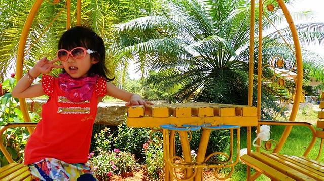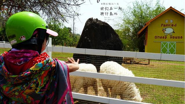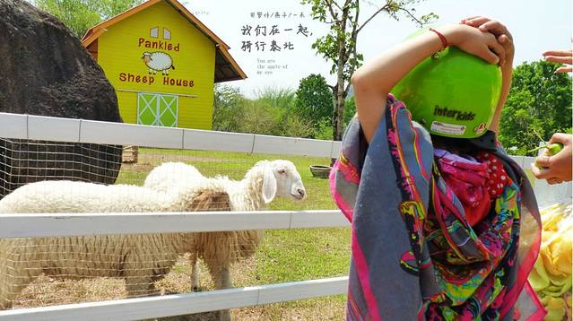 继续骑行,我们就这么开着摩托车,兜着风,太阳虽烈,但这条路边上树很高很大,越开树越大越高越笔直,如果头盔不系扣,看一大树的树顶,头盔会掉下来,这条路开着摩托也很凉爽,媳妇看到前面路边竞有一个农场,泰国是左行线的,我一个转弯就下了农场,本来空荡荡的农场,是不是看见我女儿来了,一群羊,咩咩咩的叫着出来了,这让我女儿高兴的不得了,也跟着咩咩咩玩了起来,这里是不错呀,我们老了如有这么一个农场,我梦里都会笑呀。