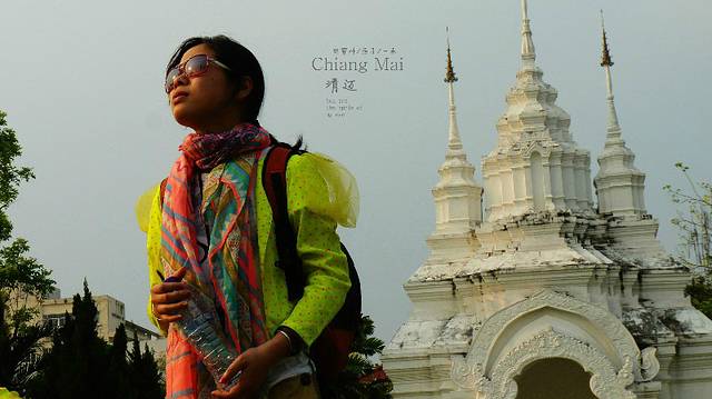第一个不知名的寺庙就在路边,我们走进去,清迈的寺庙没来之前,网上就见过了不少,现场看还是被它的精致打动,这时一位背小包的老人,主动走了过来帮我们拍照,然后留下一句,",Welcome toChiang Mai",就这么一句话,让我们三人一大早的疲备全没了,感觉清迈是在欢迎我们,所以有时一个旅行的地方,不是你要建多少酒店,收多少门票,建 什么民俗村,而是人,风情,民风,就这么一句随意而来的欢迎来清迈,就那么一个笑容,我们就给清迈打了一百分。