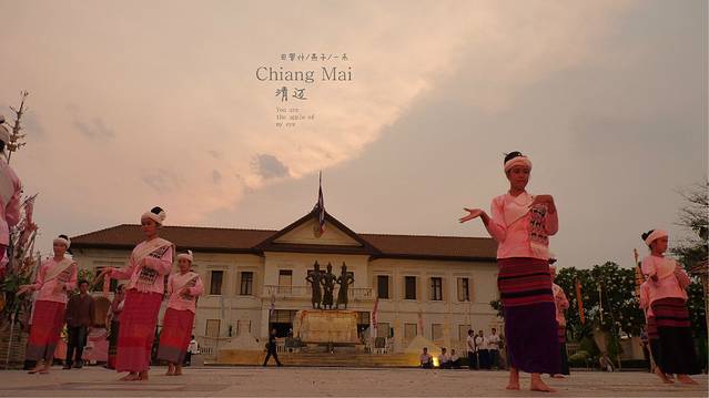 我们开进古城,三王纪念碑还有表演,我们停下车,看了一个表演,主持人就出来说,今天晚上表演就此结束,当然是泰语说的,我们看见人散了吗,再开过小巷。