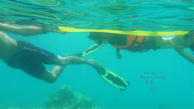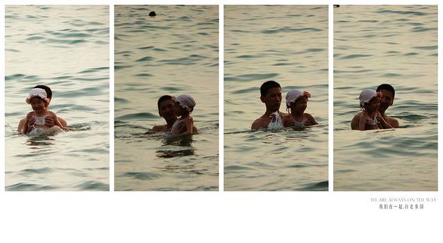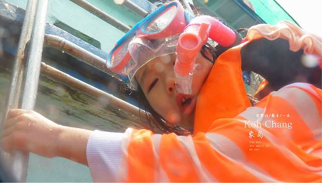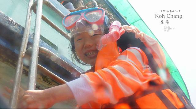 戴好浮潜工具,准备和大海亲密接触,当然我们夫妻更喜欢深潜,沙巴的海底,我们手牵手在海底的情形依然历历在目,但和女儿在一起,比得上所有的快乐,等吧,等 她长大了,那时的她最好是一个美女,如果我们能去墓斯塔格登一次顶,诗巴丹潜一次20米的我就满足了,她妈就不用去了,就我们俩,,小家伙一点也不惧怕大海,因为我们下去的不是沙滩,我直接跳入海里,她独自完成了下船扶梯的步骤,但必竞是下过雨的海,海面还是很起伏,当然这阻挡不了小家伙的热情,做了两次浮潜的尝试,让她看到了什么是海底,有鱼群有海胆,有珊瑚,船员会潜水海底把海胆放在自已头顶来吸引大家的目光,而我的手有点忙不过来,要保护小家伙,还想拍几张好片,但下过雨的大海,海水不是很清澈,而且防水套拍片非常 的不顺手,好不容易被我拍的一段女儿的水下视频也被我的不小心删除了,真遗憾呀