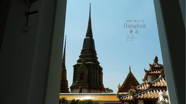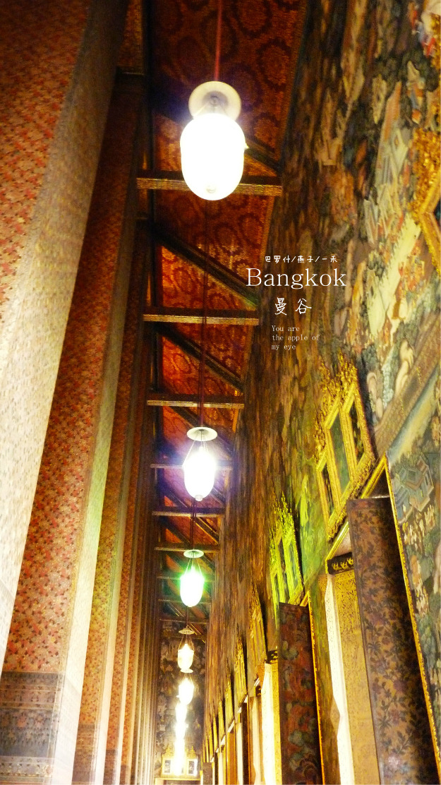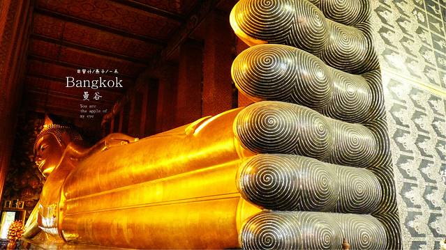 换好水,看卧佛寺的卧佛,这是泰国最大室内卧佛像。好象在亚洲也是最大的吧,卧佛寺的前身是建于1788年的福哈伦寺(Wat Phodharam),,卧佛身长46米,高15米,眼睛和足趾都镶嵌贝母,媳妇的丝巾在脖子上叫丝巾,在裤腰上就叫裙子,而进入卧佛的大殿,要脱鞋,媳妇的丝巾呢,要变成裙子,细仔看卧佛的脚板,镶嵌贝母,精致的无以轮比,