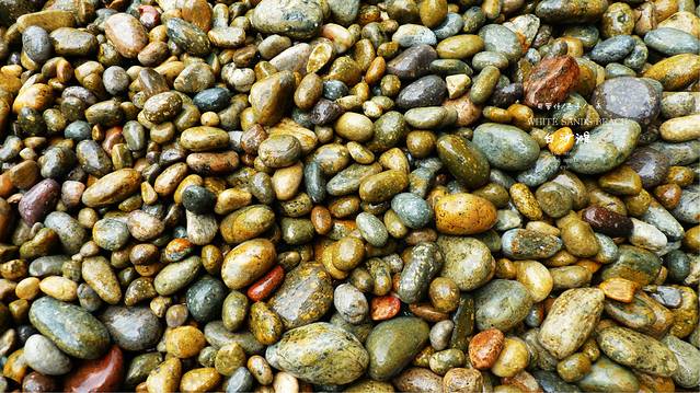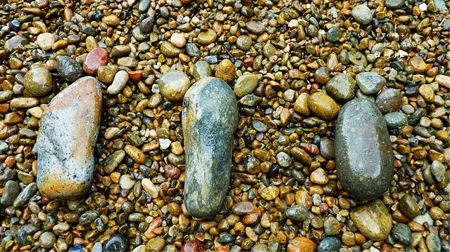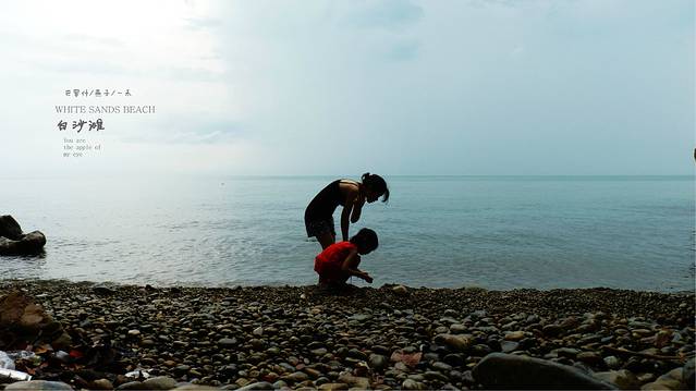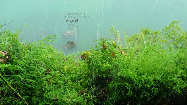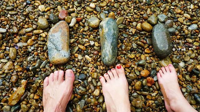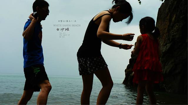 雨停了我们沿着小路往下走,住处的后面竞就是悬崖,下面就是大海,这里的沙滩是由小石头组成很小的一个沙滩,站在边上,上面还会不时的滴下水滴,没有人,属于我们三个人的白沙滩,和媳妇女儿用石头摆出三只脚,来表示我们来过这里,留个记念,