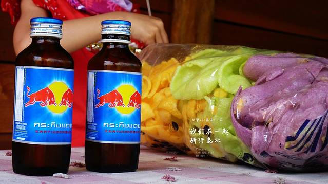 坐在这里特别舒服,屋檐下挂着各样的花,窗口放那里的是咖啡豆吧,外面种着一棵木瓜,吹着凉凉的风,和媳妇各喝了一瓶红牛,又充满力量啦,女儿喝酸奶,也是大娘家买的,忘记说了,吃虾片,香蕉片,还拿出了山竹,享受呀