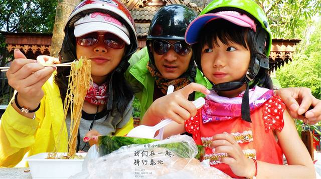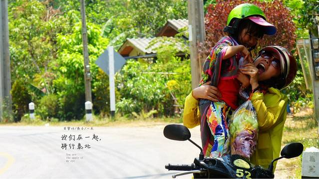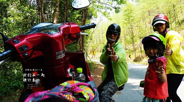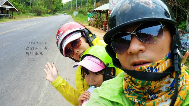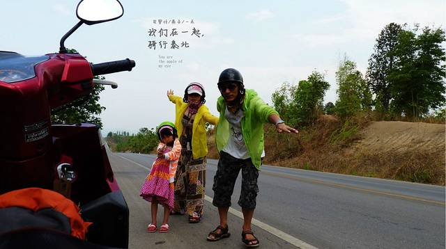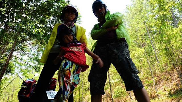 告别小羊这段路开了好久,没找到合适的地方休息,只能停路边了,先开始由女儿领舞我们跟着她跳,廖廖骑行经过的老外,以为我们是三个疯子呢,喝点水,吃点虾片,继续骑行,下一站一定要找一间有坐有喝有地方,从早上8点出来现在我们开了有5小时了,当然玩的时间也在里面,现是13;00,我们在山路上了,弯道很多,还好没下雨,不然我们就悲吹了一路泰北风光。