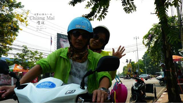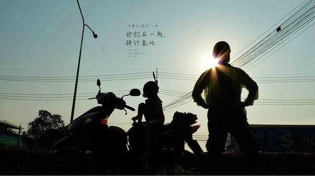 三人说好4点钟起床,却到了8点才起来,本来计划凌晨4点起床出发,这样我们最好能在10点骑到PAI,这样就能避开强烈的太阳,但路上的事谁又能预测呢,这一段路谁知道等待我们的又是什么呢,,,所以不可预见性是旅行的一大挑战,也是最好玩的,很尴尬的和老板说声再见,为什么尴尬呢,因为我们昨天和他说好了,我们会在凌晨4点出发,房卡会放他们桌上,结果..........呵呵呵,我们把两个背包的行礼放在了老板这里,只拿上一小背包放摩托车上,我们出发了,老板说一路小心,我发动了摩托,开出小巷,,开到塔佩门的7-11,我们买了一大瓶水,三盒饭,新的旅程开始了,我们在一起,骑行泰北.YES